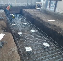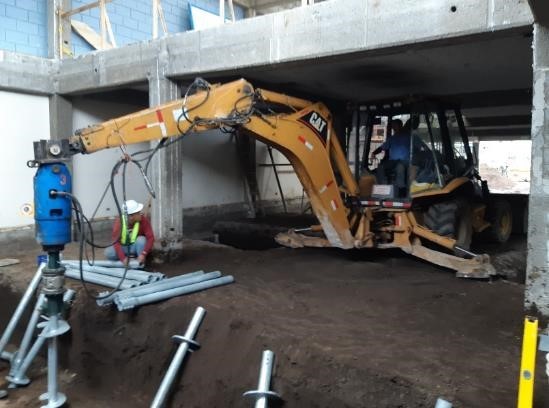 Instalación complicada en fundaciones existentes y bajo el entrepiso del edificio |